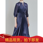 奥丽嘉朵2020夏新款藏蓝重工施华洛世奇钻链修身连衣裙1C30205290