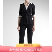 奥丽嘉朵2021春季新款黑白西装版扭结珍珠收腰上衣1C31170120