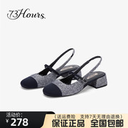 73hours女鞋小恋曲2023春季新款小香风撞色晚晚风粗跟后空凉鞋女