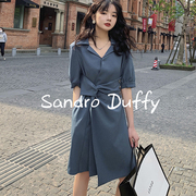 Sandro Duffy法式复古显瘦夏季新款长袖气质收腰中长款连衣裙女