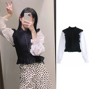 XU ZARA UR女装弹力拼接泡泡袖复古衬衫秋季 03666153800 3666153