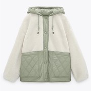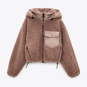 UR ZARA COS冬新羊羔毛连帽拼接抓绒短外套女03427714645 3427714