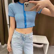 ZARA春夏季新款短袖条纹露脐针织衫开衫女03519239330 3519239330