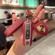真皮保时捷车钥匙壳套车匙装饰盖卡宴Panamera/Macan718Taycan911