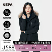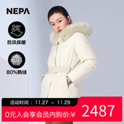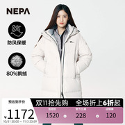 NEPA耐葩2023秋冬新品户外女士防风中长版保暖鹅绒羽绒衣7J82077