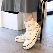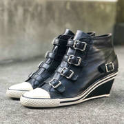 限量版 ASH 专柜正品 经典内增高厚底四扣真皮高帮做旧硫化鞋女鞋