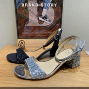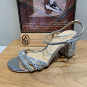 直播特价 ASH 正品 夏季一字面粗跟高跟格丽特闪凉鞋女 682210501