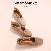 MASOOMAKE秋季舒适软皮浅口平底女鞋2 019新款甜美细带芭蕾舞单鞋