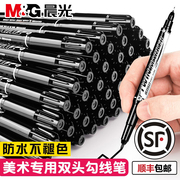 晨光双头记号笔勾线笔美术专用小学生绘画黑色油性粗细两头儿童幼儿园马克笔描边速干防水防油不掉色工地划线