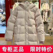 李宁女童中长版羽绒服2023冬女孩加厚宽松长版连帽羽绒衣YYMT090