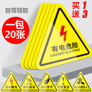 有电危险警示贴当心触电标识贴不干胶当心夹手注意安全高温标识牌警告标志三角形闪电标示高压用电贴纸警示牌