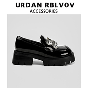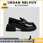 URDAN RBLVOV真皮厚底乐福鞋女2022新款粗跟单鞋复古英伦风小皮鞋