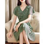 MAJE KARA 2021夏季新款法式雪纺连衣裙女气质v领收腰显瘦碎花裙