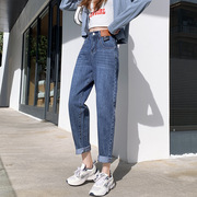 MAJE KARA 哈伦牛仔裤女2021年秋冬季韩版新款高腰宽松显瘦老爹裤