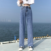 MAJE KARA 开衩牛仔裤女2021秋冬新款高腰显瘦宽松垂感阔腿裤子潮