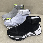 ZIRASH女鞋2019秋冬新款搭扣高帮袜套针织网面增高休闲运动老爹鞋