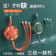 适用华为数据线三合一充电线器一拖三手机5A快充车载多功能红小米伸缩苹果三头闪充ipad多头iphone12充电器