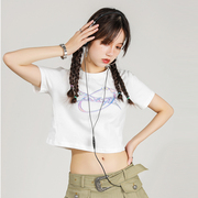 2727WORLD 法老潮流泡泡爱心露脐美式复古辣妹短袖T恤上衣女