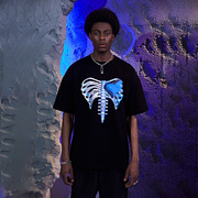 2727WORLD 法老 SS21 潮流嘻哈休闲宽松蓝色肋骨爱心印花短袖T恤
