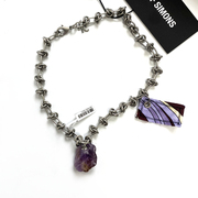 *一周发*RAF SIMONS风格天然水晶石头吊坠贴布短款荆刺项链锁骨链