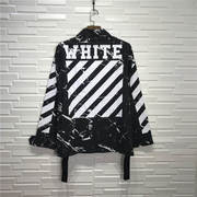 OWF OFF秋冬大理石纹扎染泼墨条纹WHITE夹克衬衫男女工装外套潮牌