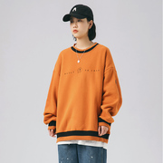 SIMPLEFIRE20AW日系复古撞色刺绣圆领卫衣男宽松休闲加绒套头上衣