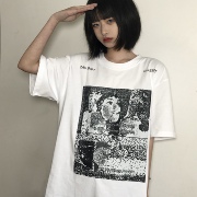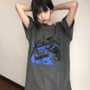 CAVEMPT日系潮牌街头T桖人物印花圆领宽松情侣同款CE蜡染做旧短袖