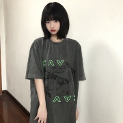 CE CAVEMPT水洗蜡染荧光绿印花字母图案日系宽松情侣短袖T桖