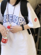 LIFE CAVEMPT刺绣字母日系宽松重磅街头CE情侣t桖男女同款短袖