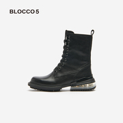 【丁真同款】BLOCCO5厚底马丁靴短靴骑士靴英伦风白色马丁靴子女