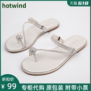 热风女鞋2022年夏季仙女风水钻平底凉鞋夹脚套趾两穿凉拖H53W2209