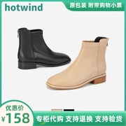 热风女鞋2022年冬季新款方头粗跟后拉链短靴英伦风时装靴H83W2460