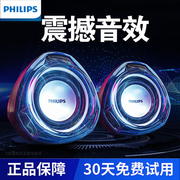 飞利浦蓝牙音箱笔记本电脑音响桌面小音箱台式家用便携迷你低音炮有线USB供电长条有源影响喇叭3D环绕