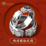 铸宝传情pt950铂金古法貔貅戒指男18k黄金实心皮丘尾戒女小指足金