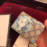 国内现货Gucc*天竺葵卡包短款钱包 印花蓝色花卉钱包 女
