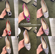 明星同款mb女鞋雪花方扣绸缎尖头浅口高跟鞋水钻平底鞋婚鞋伴娘鞋