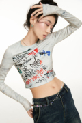LUCENCY HTML22 秋冬辣妹原创涂鸦字母印花修身百搭长袖T恤上衣