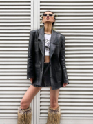 LUCENCY HTML23早春极简pu皮高级感宽松休閒黑色西装上衣外套