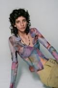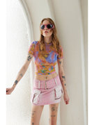 LUCENCY HTML 21春夏马赛克印花设计不规则裁剪镂空网纱修身上衣