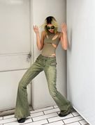LUCENCY HTML23早春INS水洗黑色复古低腰两色性感牛仔喇叭长裤