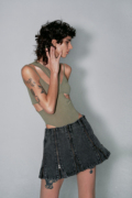 LUCENCY HTML22春夏新款黑色蓝色拉链拼接性感牛仔短裙超短裙