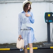 潮牌amoco all18春新黑白格子不规则腰带衬衫连衣裙 MA181DRS132