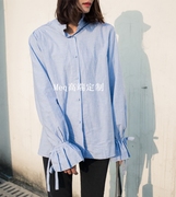 潮牌amoco all2017冬小高领木耳边系带喇叭袖衬衫女 MA174TOP115