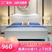实木床 现代简约白色双人床1.8米轻奢主卧室婚床1.35/1.5储物家用