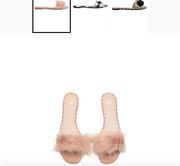 HM女鞋粉色羽毛装饰格子球球凉鞋拖鞋穆勒鞋0590416现货当天发