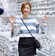 朵朵家ulzzang韩国代购centsshop正品春装幢横条纹宽松针织衫1.27