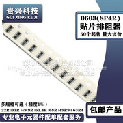 0603贴片排阻器 8P4R 22R 33R 49.9R 63.4R 68R 49R9 63R4 精度1%