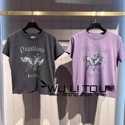 纯原M家2023春夏新日系圆领印花蝴蝶休闲短袖T恤女028GAZ90-5080