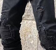 Gaorl新款经典基础水洗做旧磨破小破洞黑色牛仔裤AMIRI微弹修身男