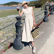 谷七七GUQIQI气质赫本风白色收腰洋装女高级感夏季长版显瘦